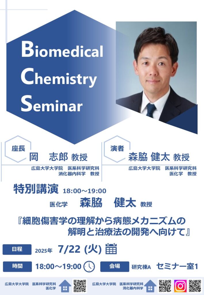 Kenta gave a talk titled “From Understanding Cell Injury to Insights into Pathology and Therapeutic Development” at the Department of Gastroenterology, Hiroshima University. He hopes this will lead to future collaborations and new research opportunities.